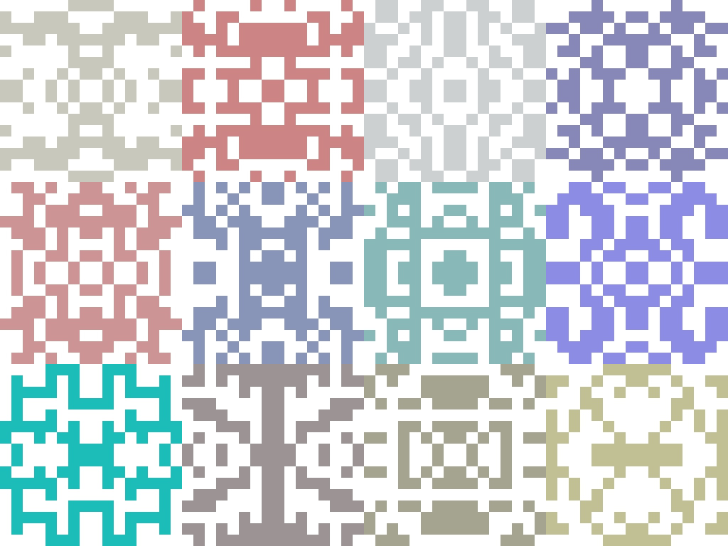 Normally, I would shy from non-standard libraries but embracing libraries really is a part of the Python philosophy so I should just get over myself. Using Pillow I was able to generate a series of small 16x16 images and paste them together using some goofy logic onto a 256x256 canvas. In other words, it's a 16x16 image blown up to be human-friendly.